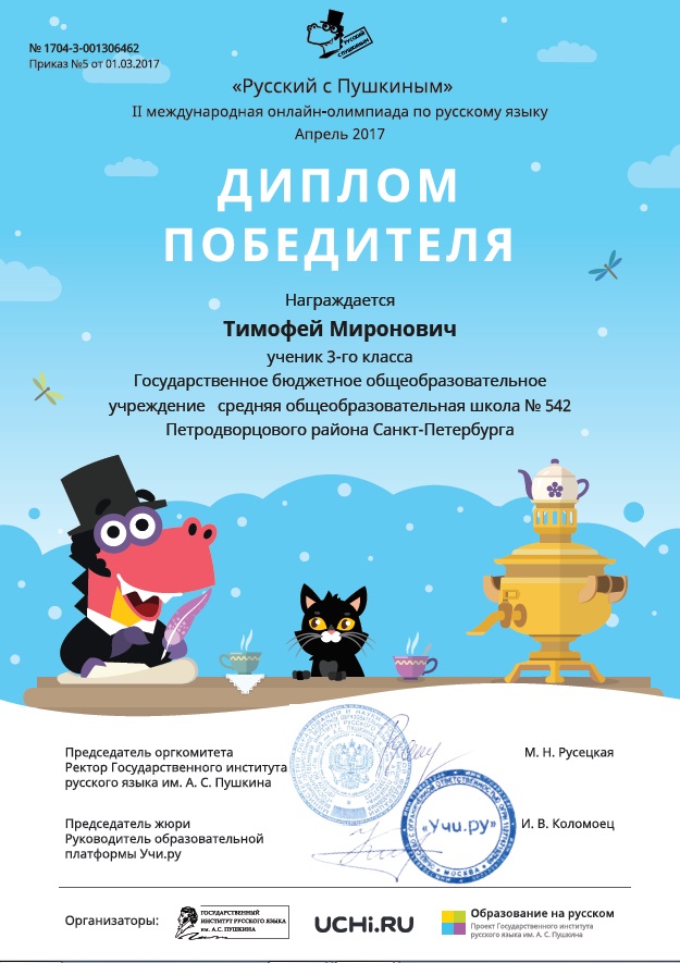 | I онлайн-олимпиада по русскому языку "Русский с Пушкиным" |