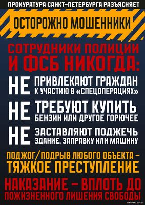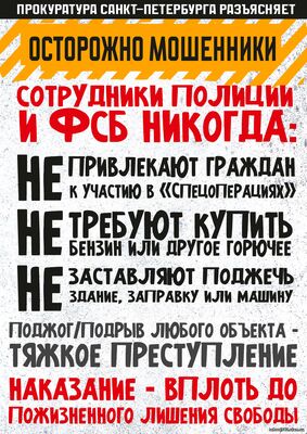 Телефоны экстренных служб: 112 (круглосуточно), ГУ МВД России по г. Санкт-Петербургу и Ленинградской области – 02, 102.