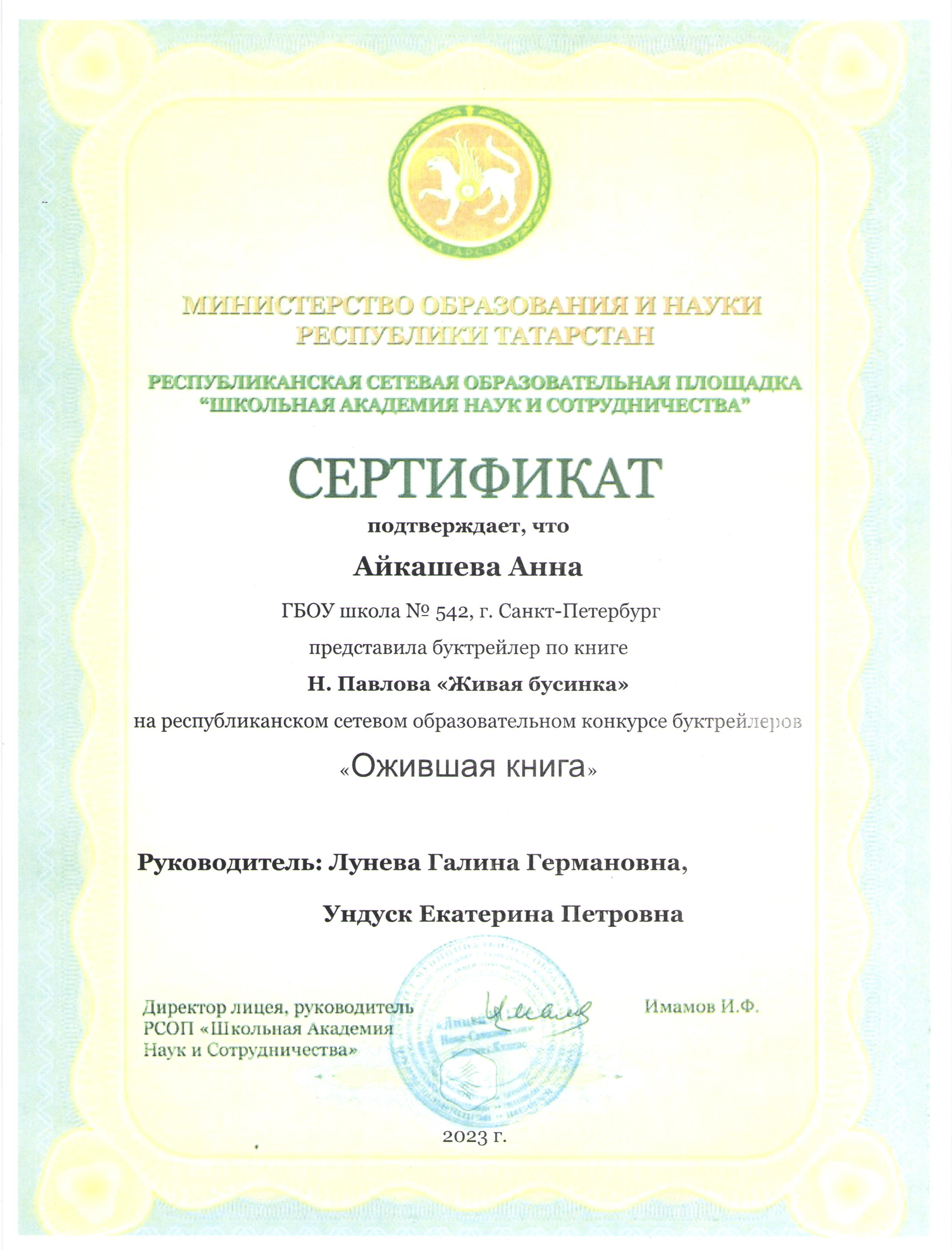 | Республиканский сетевой образовательный конкурс буктрейлеров «Ожившая книга» | 3 сертификата участника | ![]() |
