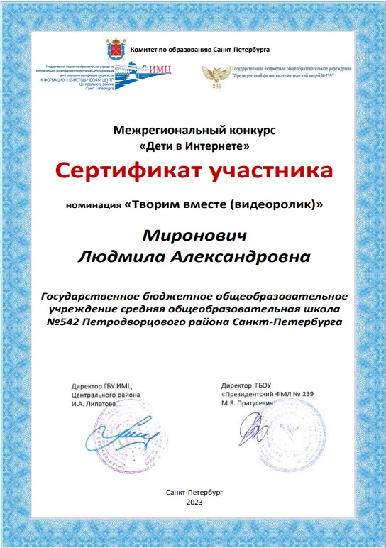 | Межрегиональный конкурс «Дети в Интернете» | 2 сертификата участника | ![]() |