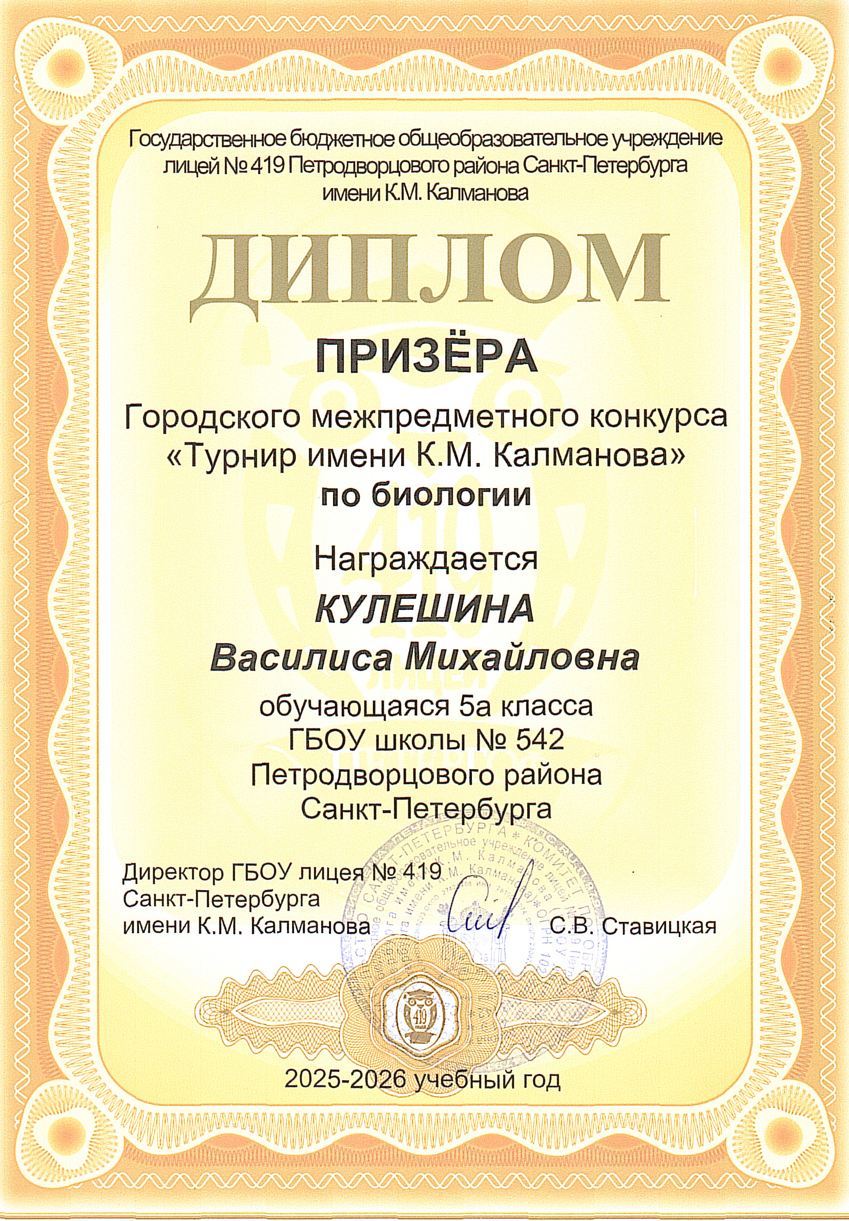 Городской межпредметный конкурс «Турнир имени К.М. Калманова» по биологии
