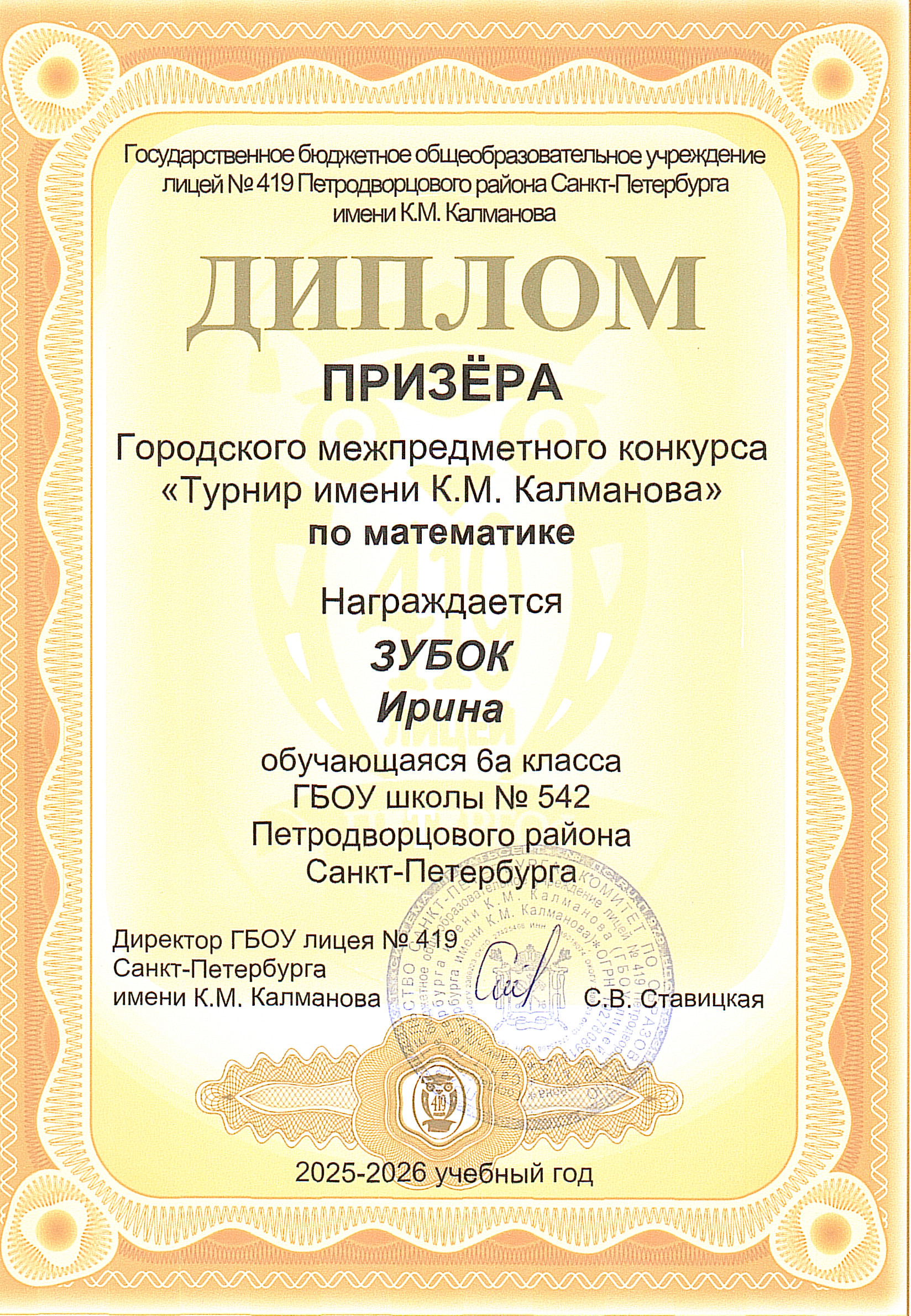 Городской межпредметный конкурс «Турнир имени К.М. Калманова» по математике