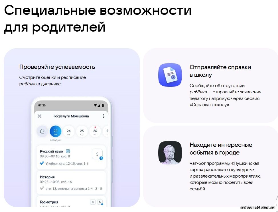 | Специальные возможности для родителей | ![]() |