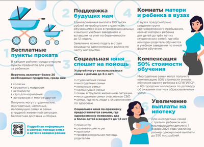 В Санкт-Петербурге введены новые меры социальной поддержки семей в связи с рождением и воспитанием детей, определенные национальным проектом «Семья» и региональными проектами Санкт-Петербурга «Поддержка семьи» и «Многодетная семья».